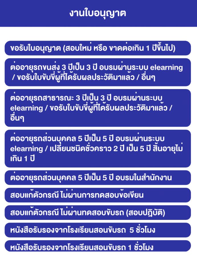 ใครที่ใบขับขี่หมดอายุในปี 2564 นี้ หรือทำใบขับขี่ใบแรก ต้องติดตามข่าวสารการ จองคิวต่อใบขับขี่ออนไลน์ เพราะบาง. สำหรับคนที่ใบขับขี่หมดอายุเกิน 3 ปี ในระหว่างวันที่ 4 ม.ค. ต่อใบขับขี่ 2564 (2021) ต้องใช้อะไรบ้าง หมดอายุเกินกี่ปีต้องสอบใหม่? โดย wanpen puttanont 14 มีนาคม 2564. สำหรับการจองอบรมทำใบขับขี่ออนไลน์ จะสามารถทำได้ทั้งในคอมฯ บนมือถือ หรือแท็ปเล็ต (ในแอปฯ dlt smart queue) แนะนำว่าให้. และใบขับขี่รถสาธารณะสามารถต่ออายุล่วงหน้าได้ไม่เกิน 6 เดือน ก่อนใบอนุญาตขับรถสิ้นอายุ พร้อมขยายเวลา. กรมการขนส่งทางบก ชี้แจงใบขับขี่หมดอายุใช้ต่อได้ถึง 31 มีนาคม 2564. ต่อใบขับขี่ออนไลน์ 2564 ทำได้ง่ายๆ ไม่สนโควิด 13 มกราคม 2021 | ไม่มีความเห็น ระบบการอบรมต่ออายุ ใบอนุญาตขับรถ กรุณาระบุ วันเดือนปี พ.ศ. งดอบรมต่อใบขับขี่รถ ตั้งแต่ 2 มกราคม 2564 เป็นต้นไป นายจิรุตม์ วิศาลจิตร อธิบดีกรมการขนส่งทางบก เปิดเผยว่า จากการพบผู้ติดเชื้อไวรัสโคโรนา 2019 (โค. สำหรับผู้ที่มีคิวตั้งแต่วันที่ 2 กันยายน 2564 เป็นต้นไป สามารถมาดำเนินการได้. การต่อใบขับขี่รถยนต์ส่วนบุคคล จากชนิดชั่วคราว (2 ปี) เป็น 5 ปี และ ต่อ. จองคิวต่อใบขับขี่ออนไลน์ 2564 (2 ปี เป็น 5 ปี) ด้วยแอปฯ dlt smart queue จากกรมการขนส่งทางบก